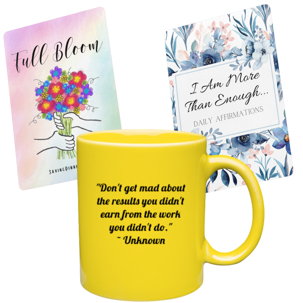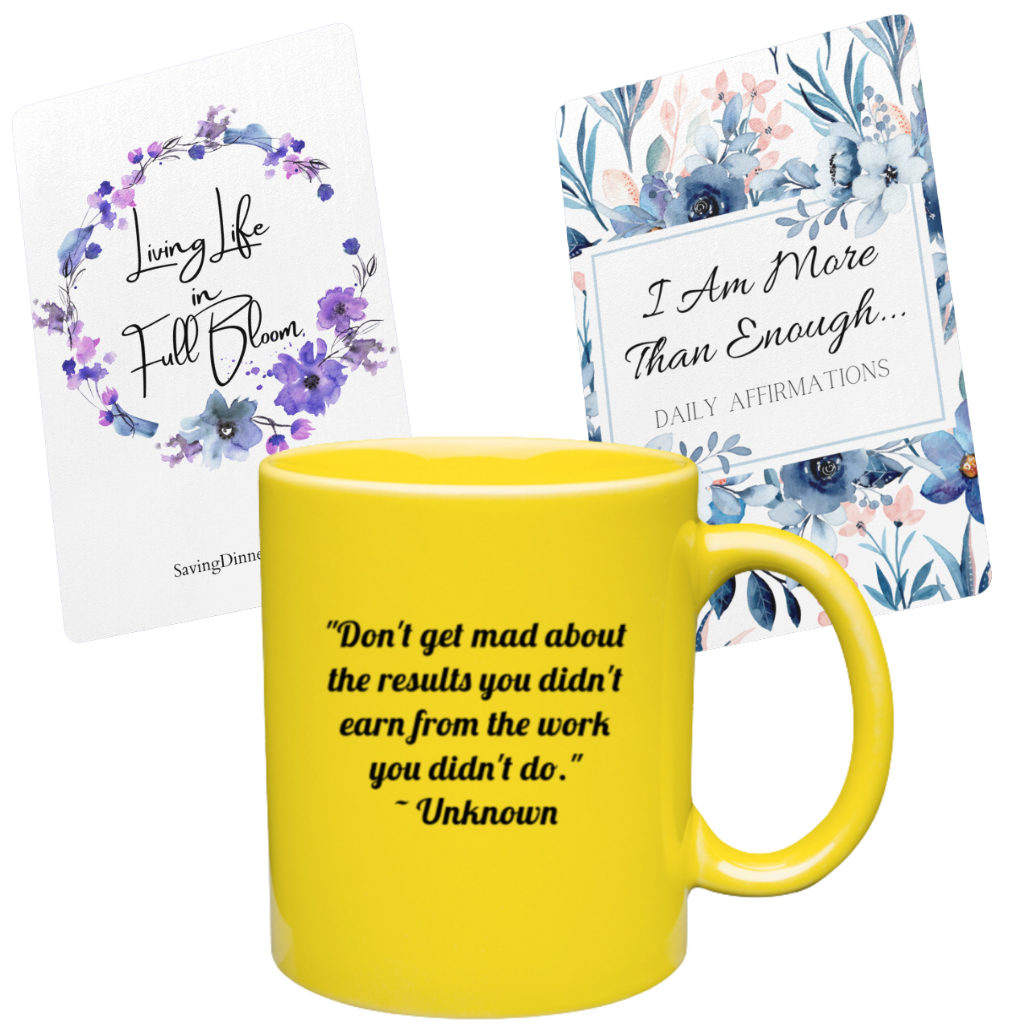 Purple Quote Deck PLUS Yellow Mug PLUS Affirmation Deck